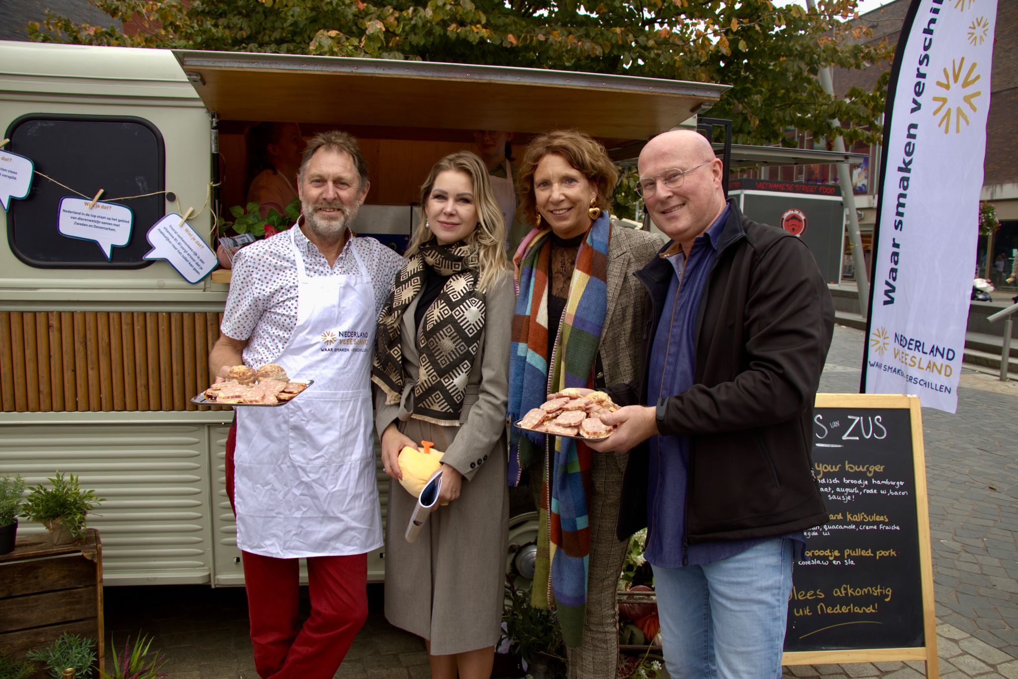 Nederland Vleesland was aanwezig met een foodtruck vol ambachtelijke gerechtjes, waaronder een bal met kaas, pulled pork en een frisse wrap met sla en vlees. Bezoekers konden zelfs zelf een broodje hamburger samenstellen.